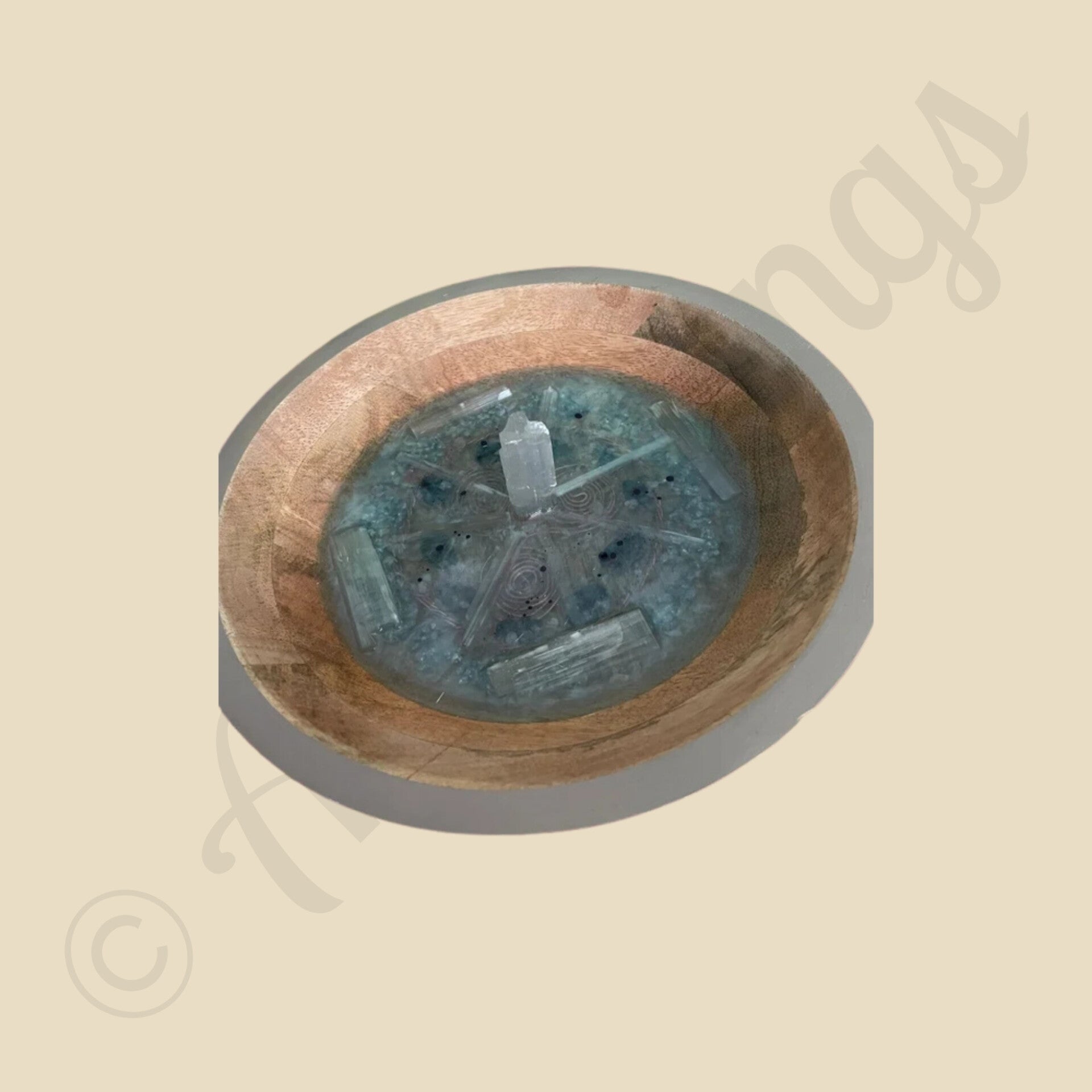 krachtschaal oplaadschaal hout sea of life met seleniet sunghiet rozenkwarts bergkristal amethist (gouden driehoek) koperen Triskelion
