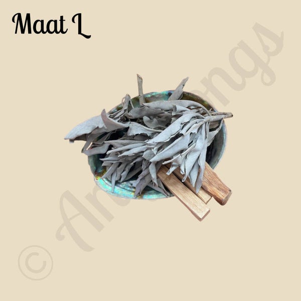 De Abelone schelp, afkomstig uit de zee, staat symbool voor emotionele genezing en intuïtie. In combinatie met de heilige witte salie – al eeuwenlang gebruikt door inheemse volkeren voor het zuiveren van energie – en de Palo Santo uit Zuid-Amerika, bekend om zijn warme, zoetige geur en beschermende werking, vormt dit een krachtig ritueel hulpmiddel.