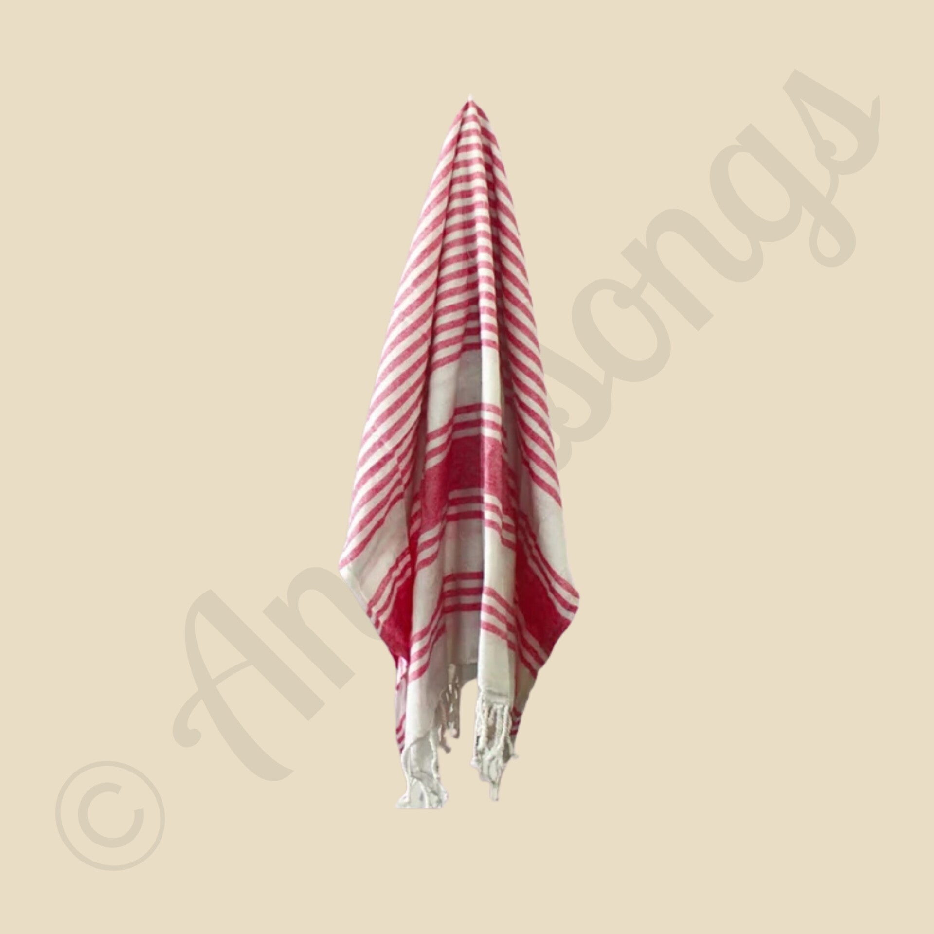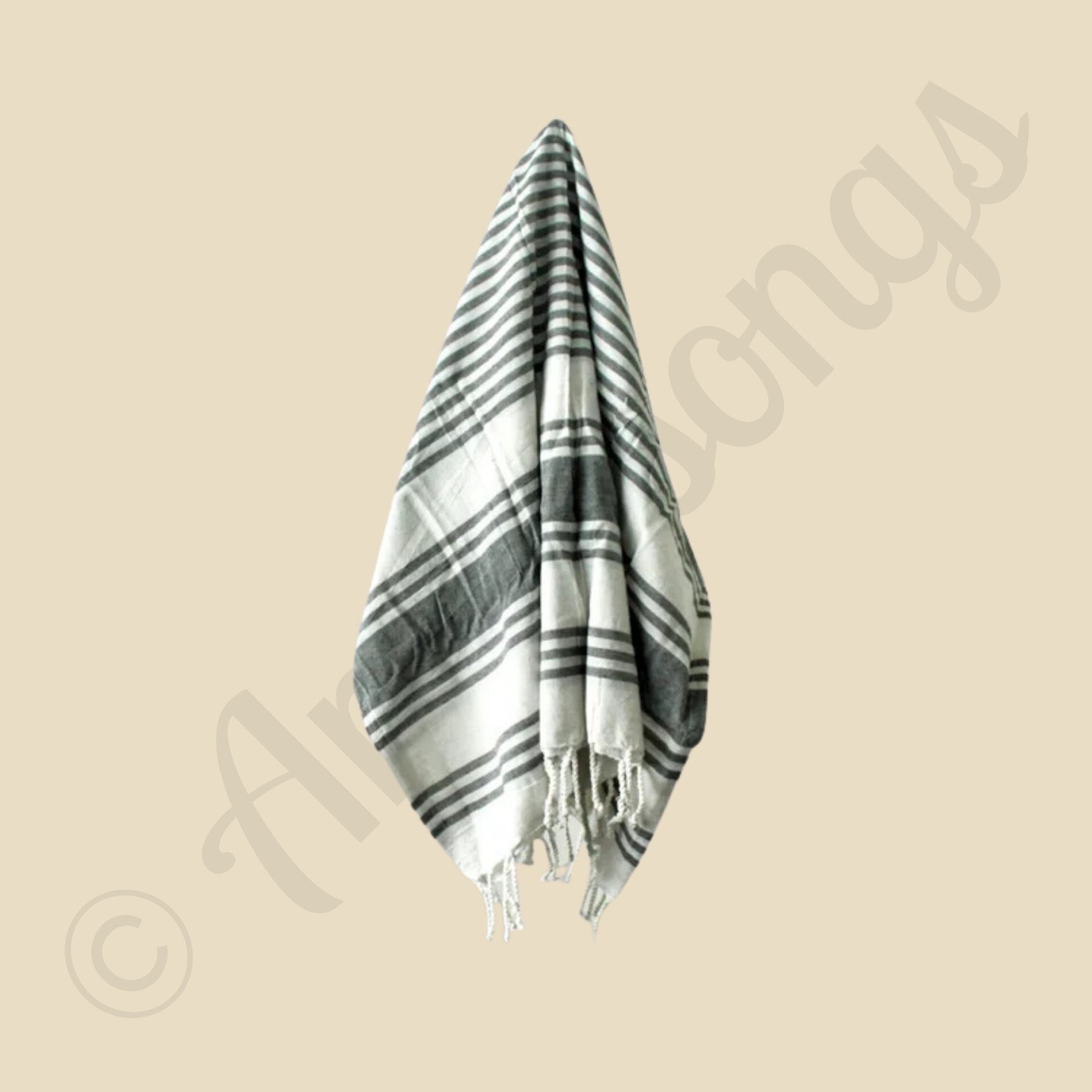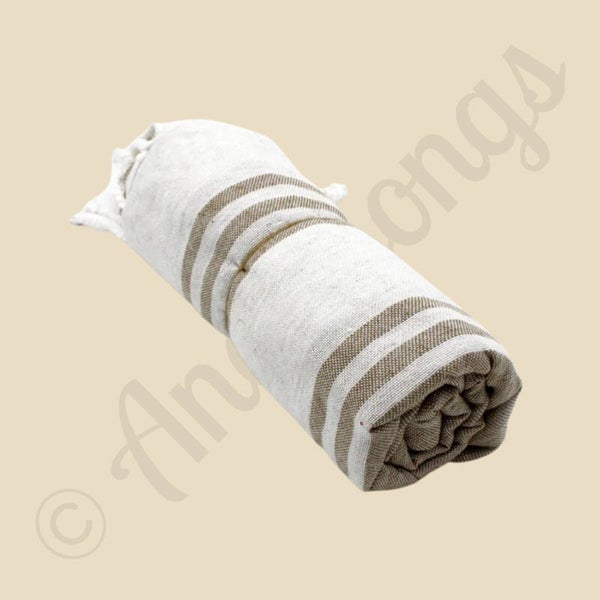 Of je nu ontspant in een spa of ligt te zonnen aan zee, deze hamamdoek voegt een vleugje comfort en klasse toe aan elk moment.