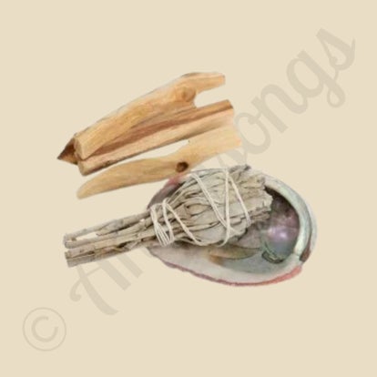 De Abelone schelp, afkomstig uit de zee, staat symbool voor emotionele genezing en intuïtie. In combinatie met de heilige witte salie – al eeuwenlang gebruikt door inheemse volkeren voor het zuiveren van energie – en de Palo Santo uit Zuid-Amerika, bekend om zijn warme, zoetige geur en beschermende werking, vormt dit een krachtig ritueel hulpmiddel.